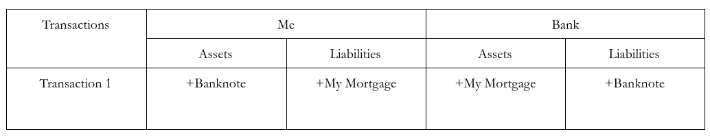 Both my bank and I are expanding our balance sheets. The difference is the IOUs that Banks create are widely accepted “as money”, while my IOUs are not. We’ll say more about why that is true in future posts. For now, it’s important to really grasp that this is not money lending. As the famous economist Hyman Minsky said: