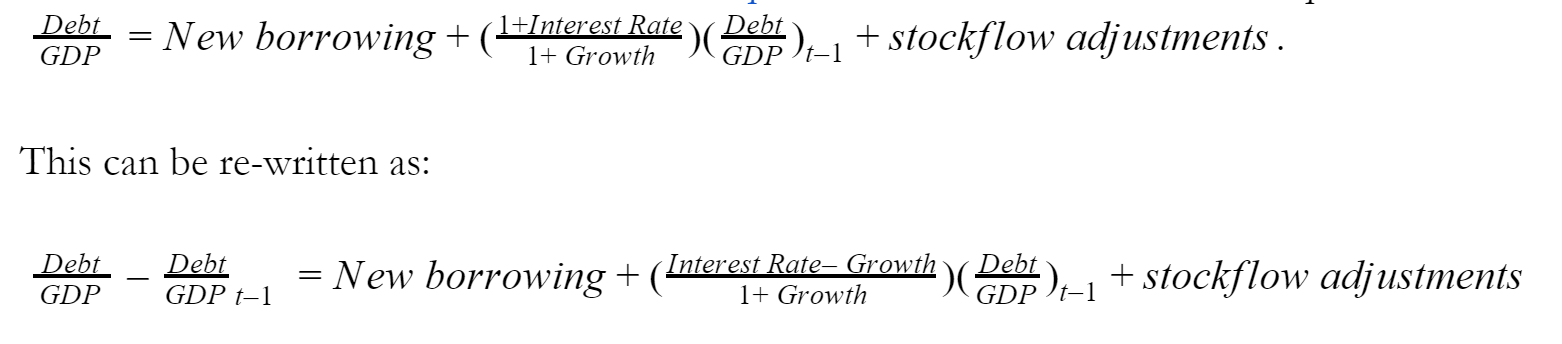 Why is this change in targets important? To understand this, we need to know how exactly debt evolves over time, it all boils down to one equation.
