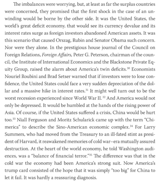 Why do swap lines matter? The key is to understand that, from a financial point of view, international trade flows are secondary to the financial flows that cross borders. The exchange rates between currencies and the payments across borders are not really about the payments that flow in one direction or another to pay for goods and services. If you look at the world economy from the trade point of view, the dollar seems like it should be fragile. The United States has been constantly running current account deficits for decades, with little end in sight. From a trade centered point of view, this suggests that the U.S. is in danger of a sudden currency collapse and import-induced high inflation- perhaps even hyperinflation. Indeed this was a centerpiece of the Brookings institution’s “Hamilton Project” in the mid-2000s, which directly informed and staffed the Obama Administration that would soon follow. Tooze helpfully reminds us in Crashed that: