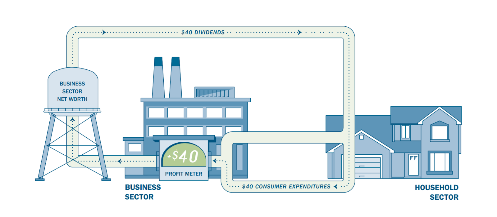There is, of course, another flow which can flow back into the business sector as revenue, but doesn’t flow out as a business expense — dividends.